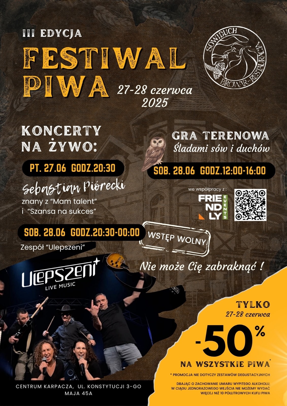 „Śladami Sów i Duchów” to przygodowa gra, którą przechodzisz samodzielnie — w swoim tempie, z ekipą lub solo. Wyposażony w mapkę, będziesz szukać punktów kontrolnych i zbierać pieczątki. Na trasie czekają słodkie niespodzianki, a na mecie zasłużona nagroda – pamiątkowa butelka piwa z browaru Sowiduch.